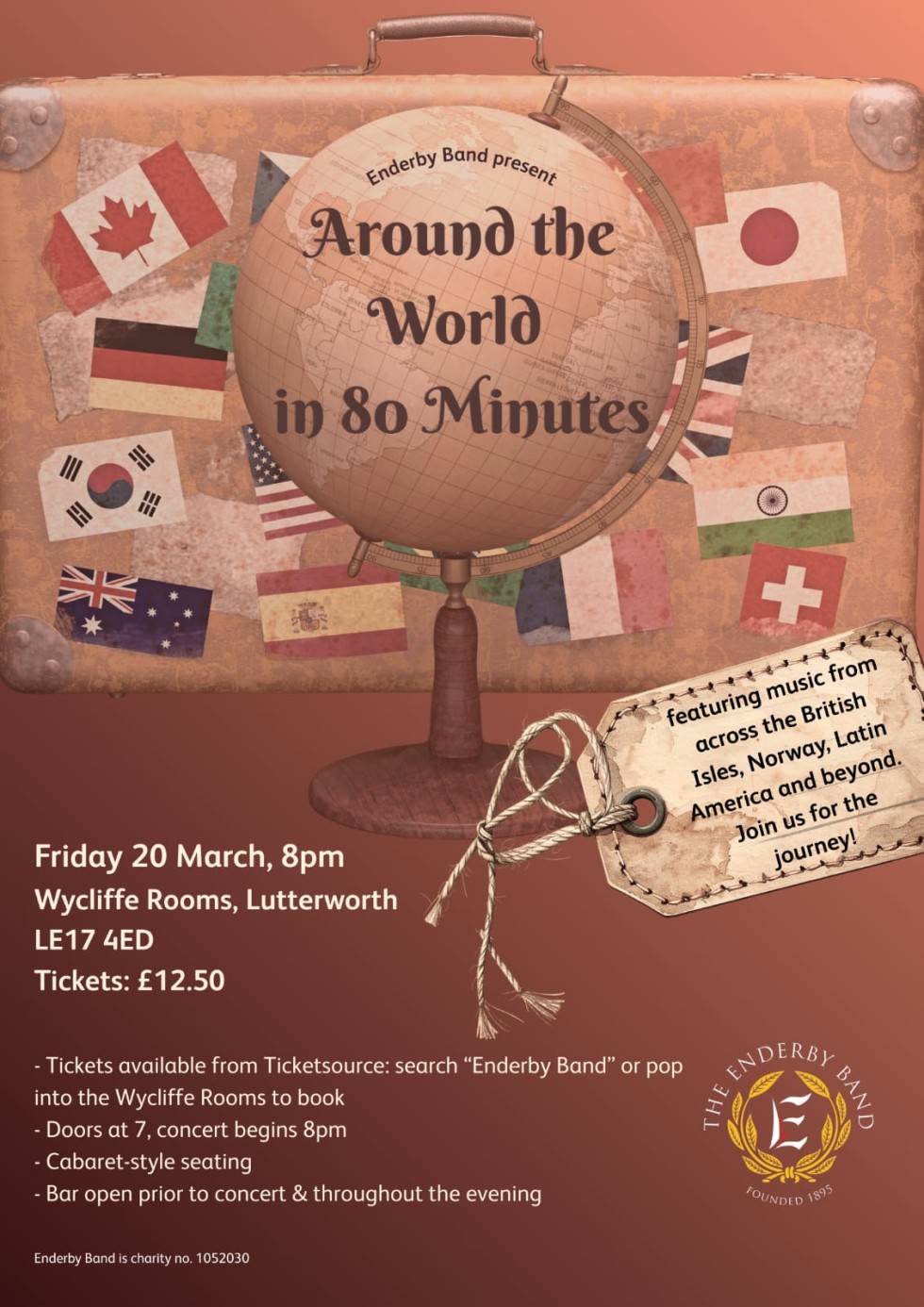 Join Enderby Band, a Leicestershire-based Championship section band, as they take you on a journey around the world without you ever having to leave your seat.